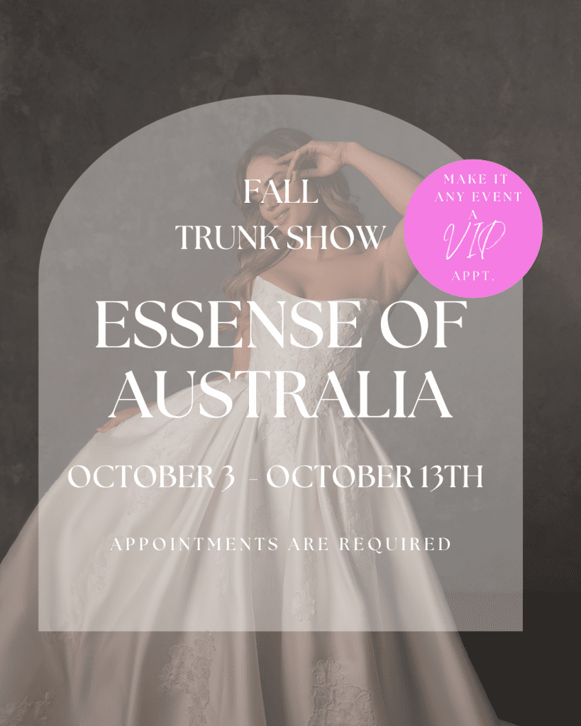 And get up-to-date updates by following us on Instagram & Facebook. You’ll be the first to know about upcoming bridal gown events.