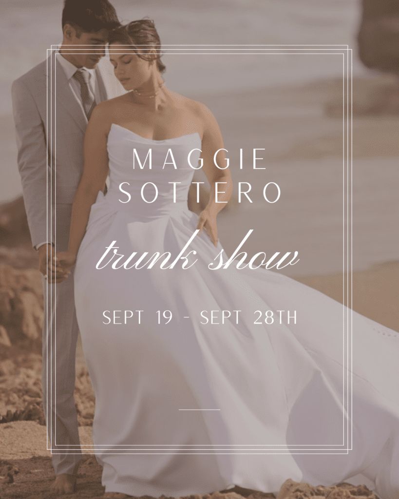 We’re delighted to offer the following events bridal gown trunk shows. If you don’t see an event that you can make, check back often, as we’re always adding new events. We love to showcase all the newest trends and styles, so make sure to book your private appointment today.